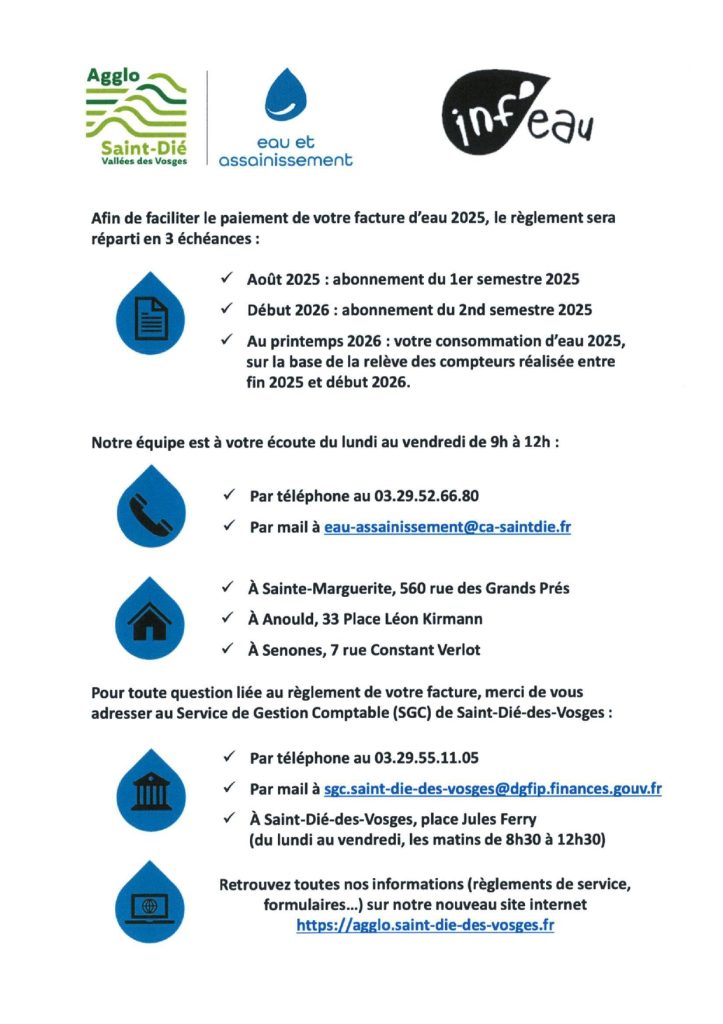 Info importante sur la facturation de l’eau